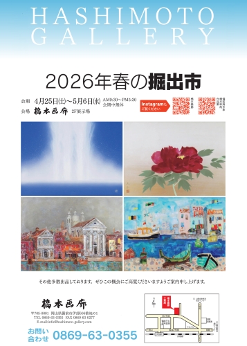 来たるゴールデンウィークの期間中、橋本画廊2階展示場において恒例の2026年春の掘出市を開催いたします。